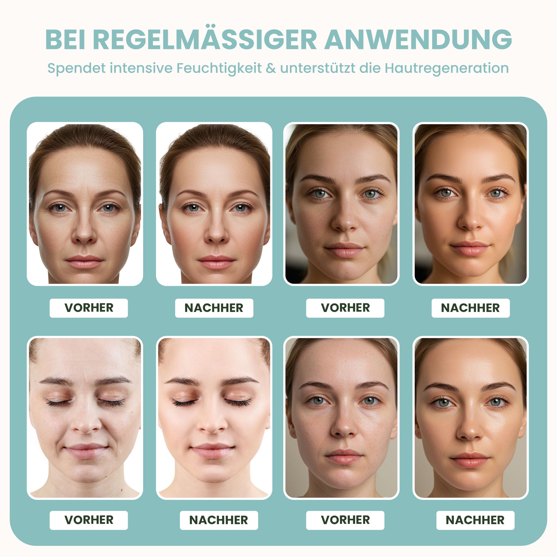 Sie dienen dazu, die Kollagenproduktion anzuregen, vor vorzeitigem Kollagenabbau zu schützen, Entzündungen zu reduzieren und den Feuchtigkeitsgehalt der Haut zu erhöhen.